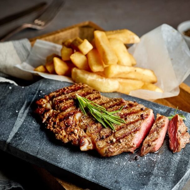 At our restaurant, we serve only the finest steaks, sourced from the best local farms. Our steaks are dry-aged for at least 28 days, which enhances their flavor. Our steaks are cooked to perfection over a wood-fired grill. This gives them a unique smoky flavor that is sure to tantalize your taste buds.